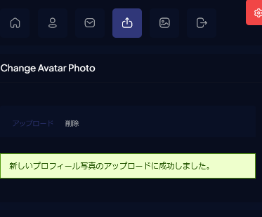 「新しいプロフィール写真のアップロードに成功しました。」と表示されたらアバター設定完了となります。